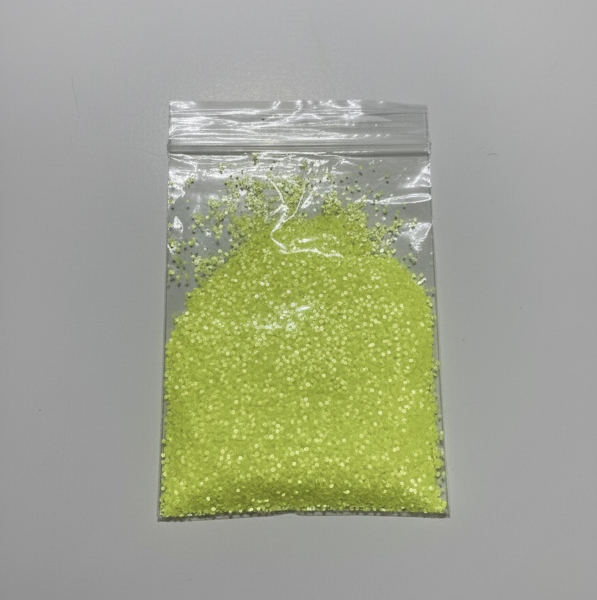 Here are 10g bag of 1mm UV Yellow glitter. Glitters add a brilliant glint to soft plastic lures.